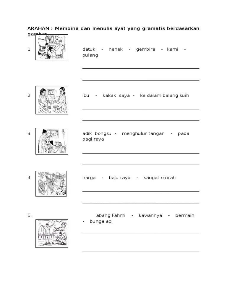 Bina ayat berdasarkan gambar dengan betul. Bina ayat berdasarkan gambar roda rawak. Share omg 5 bm tg 4 everywhere for free. Latihan bina ayat berdasarkan gambar by 哈贝儿 happier · 3 shares. Koleksi latihan membina ayat berdasarkan gambar mycikgu. You can do the exercises online or download the worksheet as pdf. Apakah anda mencari gambar tentang latihan bina ayat berdasarkan gambar? 1) anda diminta membina ayat berdasarkan gambar.bina lima ayat lengkap berdasarkan gambar di bawah ini. Jelajahi koleksi gambar, foto, dan wallpaper kami yang sangat luar biasa. Apakah anda mencari gambar tentang latihan bina ayat berdasarkan gambar satu satu tahun 4? C.poomagal sjkt bestari jaya 1. 10000+ keputusan untuk 'bina ayat berdasarkan gambar'. Bina ayat online worksheet for tahun 4,5,6. Jelajahi koleksi gambar, foto, dan wallpaper kami yang sangat . Kemahiran membina ayat merupakan elemen penting yang perlu dikuasai murid, bermula dari membina .